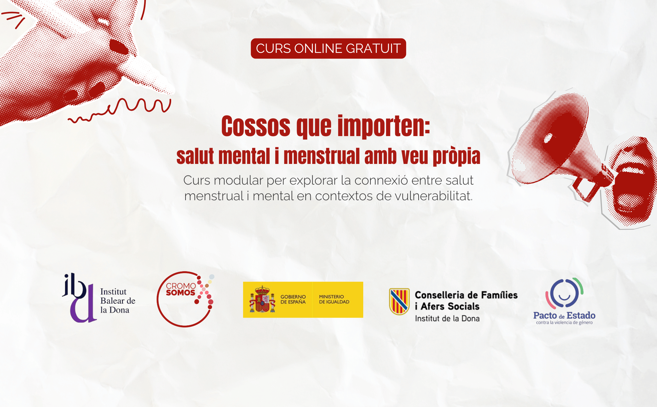 Un projecte de Cromosomos X, amb el suport de l’Institut Balear de la Dona. Aquest curs és possible gràcies al suport de l’Institut Balear de la Dona i a la tasca de Cromosomos X. L’activitat està 100% subvencionada, la qual cosa garanteix que sigui gratuïta per a les persones participants, mantenint alhora la qualitat, el rigor i el compromís amb la transformació social.